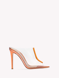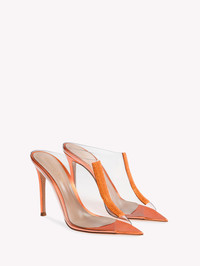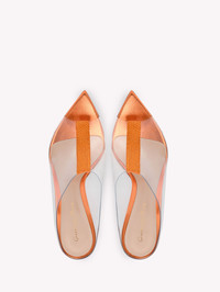 A captivating expression of femininity, the Sigma is a sensual open-toe mule that plays with textures, mixing a clear Plexi upper with a crystal-encrusted suede insert and metallic nappa leather. Defined by a sharp pointed-toe and a 105mm stiletto heel, it is handmade in Italy. - Heel height: 105 - Model Code: G17840.15RIC Item ID: G17840.15RIC.GCKTMAM