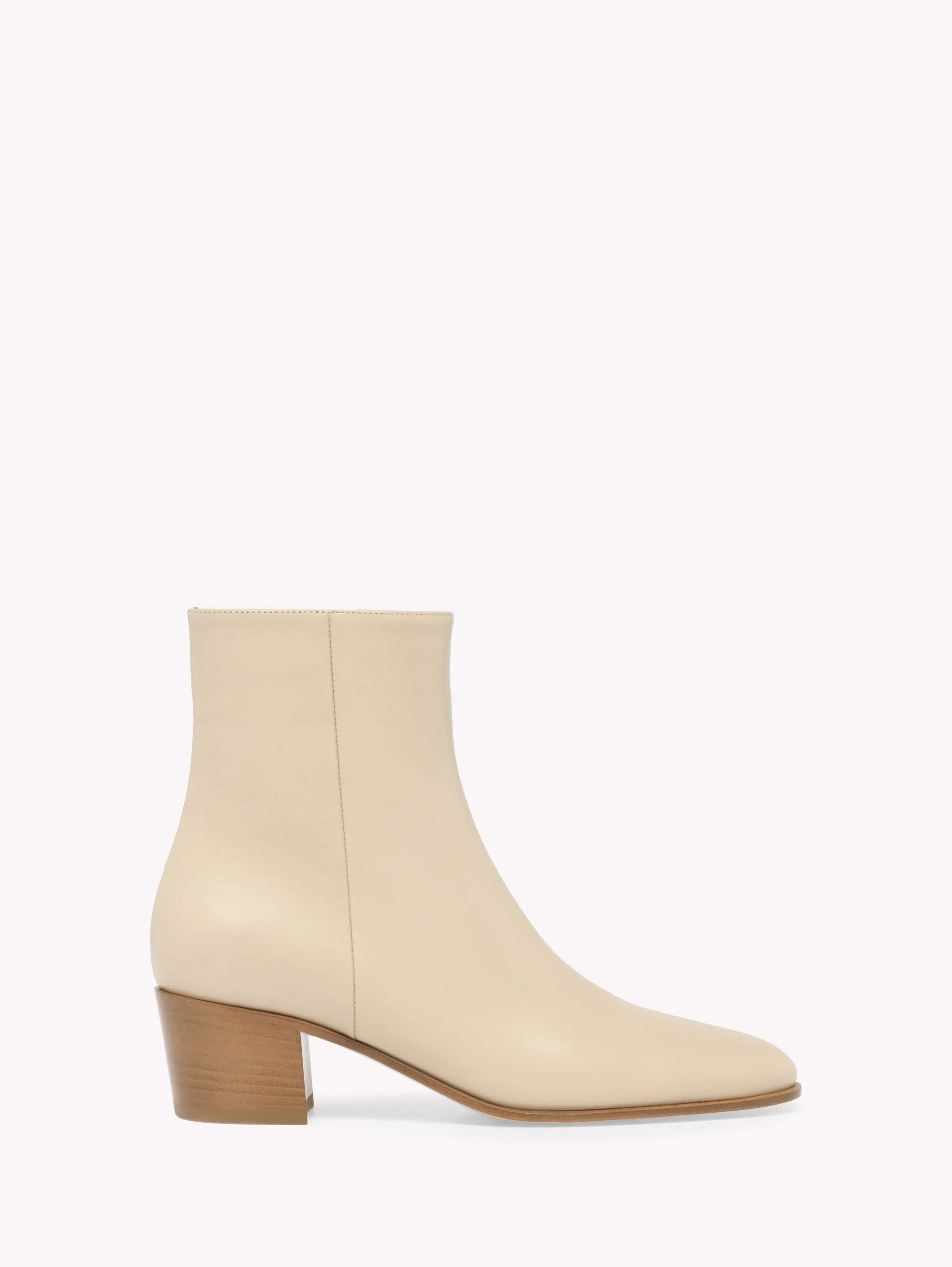 Crafted from leather, Spencer is an almond-toe fitted bootie with a 45mm stack leather heel. The design is completed with an inner tonal zipper. Handmade in Italy. - Composition: 100% CALF - Heel height: 1.8 inches / 45 mm - Model Code: G72977.45CUO Item ID: G72977.45CUO.VGISAND