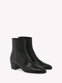 Crafted from leather, Spencer is an almond-toe fitted bootie with a 45mm stack leather heel. The design is completed with an inner tonal zipper. Handmade in Italy. - Composition: 100% CALF - Heel Height: 1.8 inches / 45 mm - Model Code: G72977.45CUO Item ID: G72977.45CUO.VGINERO