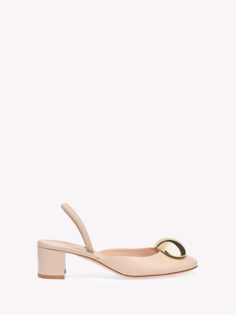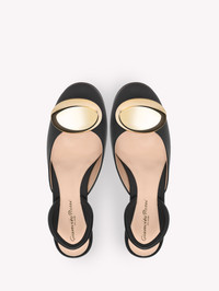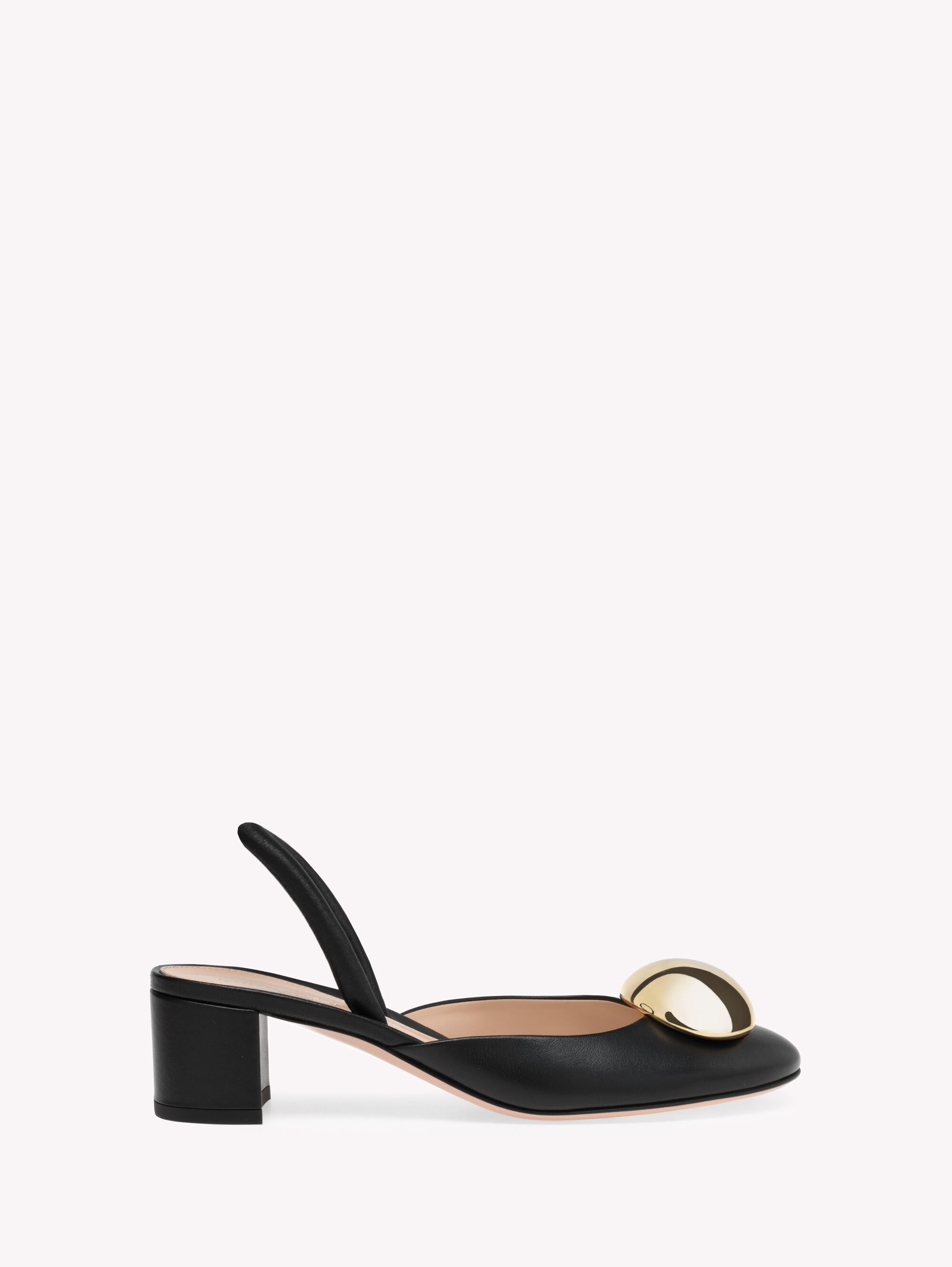 Crafted from soft precious leather, Sphera 45 is a round toe slingback with a 45mm block heel and a tubular elastic back strap covered in matching leather. A custom-made gold finished element enriches the front. Handmade in Italy. If you wish to return a product, you can return it for free within 30 days of the reception of your order. Please return the items in the same condition in which they were received, including dustbag, box and protective stickers. Incomplete, damaged, worn or altered items cannot be accepted as stated in our Terms and Conditions . Standard shipping FREE (3-5 business days) Express shipping $60 (1-3 business days) Deliveries are made from Monday to Friday between 9:00 a.m. and 6:00 p.m. The time frame for delivery is calculated from the time your order is dispatched, not from the time your order was placed. Please check our Shipping page for further information. - Composition: 100% NAPPA - Heel height: 1.8 inches / 45 mm - Model Code: G95456.45RIC Item ID: G95456.45RIC.NXFNERO