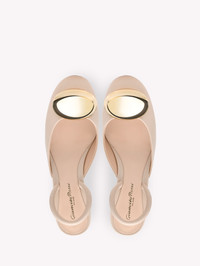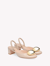 Crafted from soft precious leather, Sphera 45 is a round toe slingback with a 45mm block heel and a tubular elastic back strap covered in matching leather. A custom-made gold finished element enriches the front. Handmade in Italy. If you wish to return a product, you can return it for free within 30 days of the reception of your order. Please return the items in the same condition in which they were received, including dustbag, box and protective stickers. Incomplete, damaged, worn or altered items cannot be accepted as stated in our Terms and Conditions . Standard shipping FREE (3-5 business days) Express shipping $60 (1-3 business days) Deliveries are made from Monday to Friday between 9:00 a.m. and 6:00 p.m. The time frame for delivery is calculated from the time your order is dispatched, not from the time your order was placed. Please check our Shipping page for further information. - Composition: 100% NAPPA - Heel height: 1.8 inches / 45 mm - Model Code: G95456.45RIC Item ID: G95456.45RIC.NXFMOUS