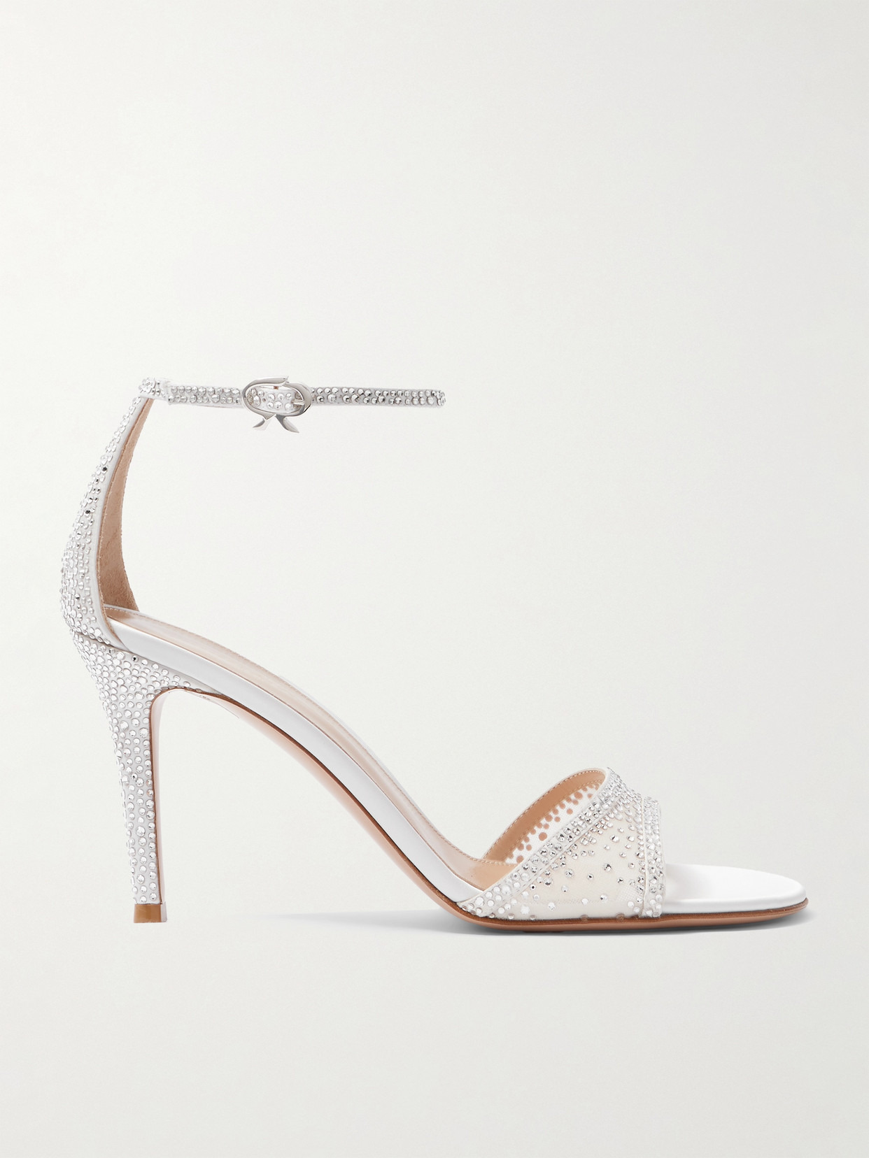 Gianvito Rossi's 'Rania' sandals shimmer with crystals that catch light from every angle. They're crafted from supple suede, trimmed with delicate organza and rest on 85mm stiletto heels.