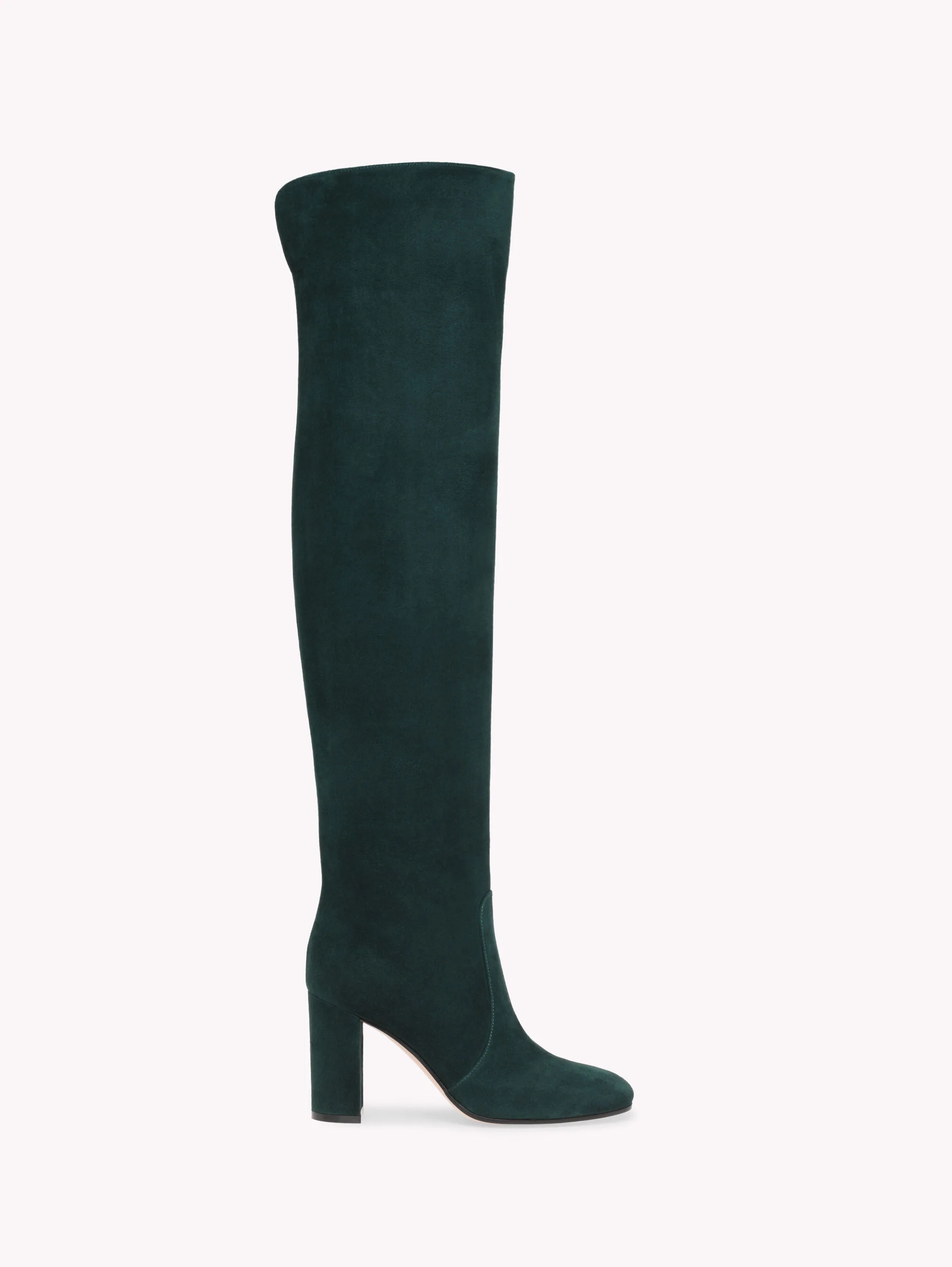 Crafted from supple suede, Glen Cuissard is a pull-on over-the-knee boot with a round toe and an 85mm chunky heel. Handmade in Italy. - Composition: 100% SUEDE - Heel height: 3.3 inches / 85 mm - Model Code: G80145.85RIC Item ID: G80145.85RIC.C45HUNT