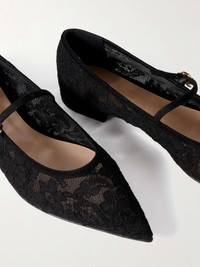 Gianvito Rossi's 'Claudia' Mary Jane flats have been made in Italy from elegant lace. They're shaped with ladylike pointed toes and outlined with suede trims. The buckle means they'll stay secure all day long. Size & Fit - Fits true to size, take your normal size - Narrow at the toe - Italian sizing Details & Care - Slight heel - Black lace and suede (Calf and Goat) - Buckle-fastening strap
