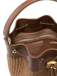 tassel-detail bucket bag Highlights - Camel brown - Drawstring fastening - Single top handle - Adjustable detachable shoulder strap - Internal zip-fastening pocket Imported Composition Outer: Calf Leather 100%, Raffia 100% SIZE & FIT Model measurements Height 5 ft 9 in(1.75 m) Bust/Chest 34.64 in(88 cm) Hips 36.61 in(93 cm) Waist 26.37 in(67 cm) Measurement DEPTH 4.72 in(12 cm) HEIGHT 7.87 in(20 cm) WIDTH 7.87 in(20 cm)