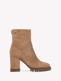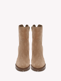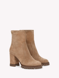 Timber is a rounded-toe bootie standing on an 87mm chunky heel covered in matching suede and 17mm rubber front sole (the height perceived is 70mm). The design is completed with an inside nylon zipper with Gianvito Rossi iconic logo engraved on the metallic zip puller. The signature Ribbon detail in metal is handstitched on the top rear of the boot shaft. Handmade in Italy. - Composition: 100% SUEDE - Heel height: 70 - Model Code: G73166.70RIC Item ID: G73166.70RIC.CASCAML