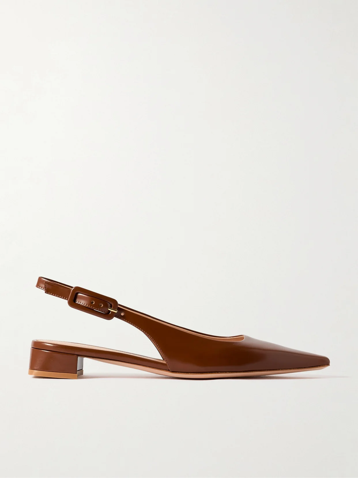 Gianvito Rossi's 'Tokio' flats are defined by their elongated square toes and vamps. This version has been made in Italy from glossed leather and set on 20mm heels. The slingback straps add to the chic, retro feel.