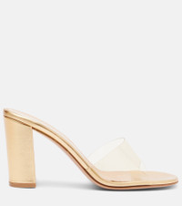 Crafted from materials of the highest quality, Gianvito Rossi’s designs are handmade using both traditional craftsmanship and innovative techniques. These mules are made in Italy with transparent PVC uppers set atop block heels. Product Details - Upper: rubber - Lining: leather - Sole: leather insole and sole - Toe shape: round open toe - Made in Italy - Includes: shoe box, dust bag - Designer color name: Mekong+Mekong - Item color: gold, transparent - Item number: P01105932 Size & Fit - True to size - European sizes - 8,5cm-3.5" heel