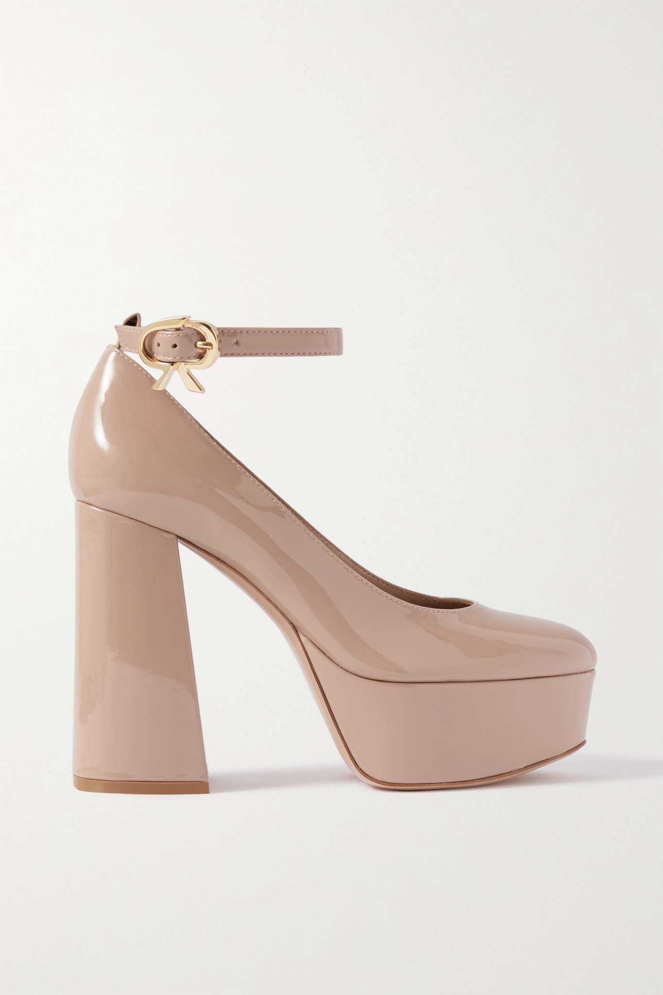 EDITORS'NOTES Gianvito Rossi's 'Vernice' pumps are reminiscent of retro styles you'd see in the '60s and '70s. Set on towering block heels balanced by sturdy platforms, they're made from glossy blush patent-leather and have an adjustable ankle strap with a logo-embossed buckle. Wear yours with mini dresses and flared pants to really capture the vintage feel. SIZE & FIT - Fits true to size, take your normal size - Italian sizing DETAILS & CARE - Heel measures approximately 70mm/ 3 inches with a 30mm/ 1 inch platform - Blush patent-leather (Calf) - Buckle-fastening ankle strap