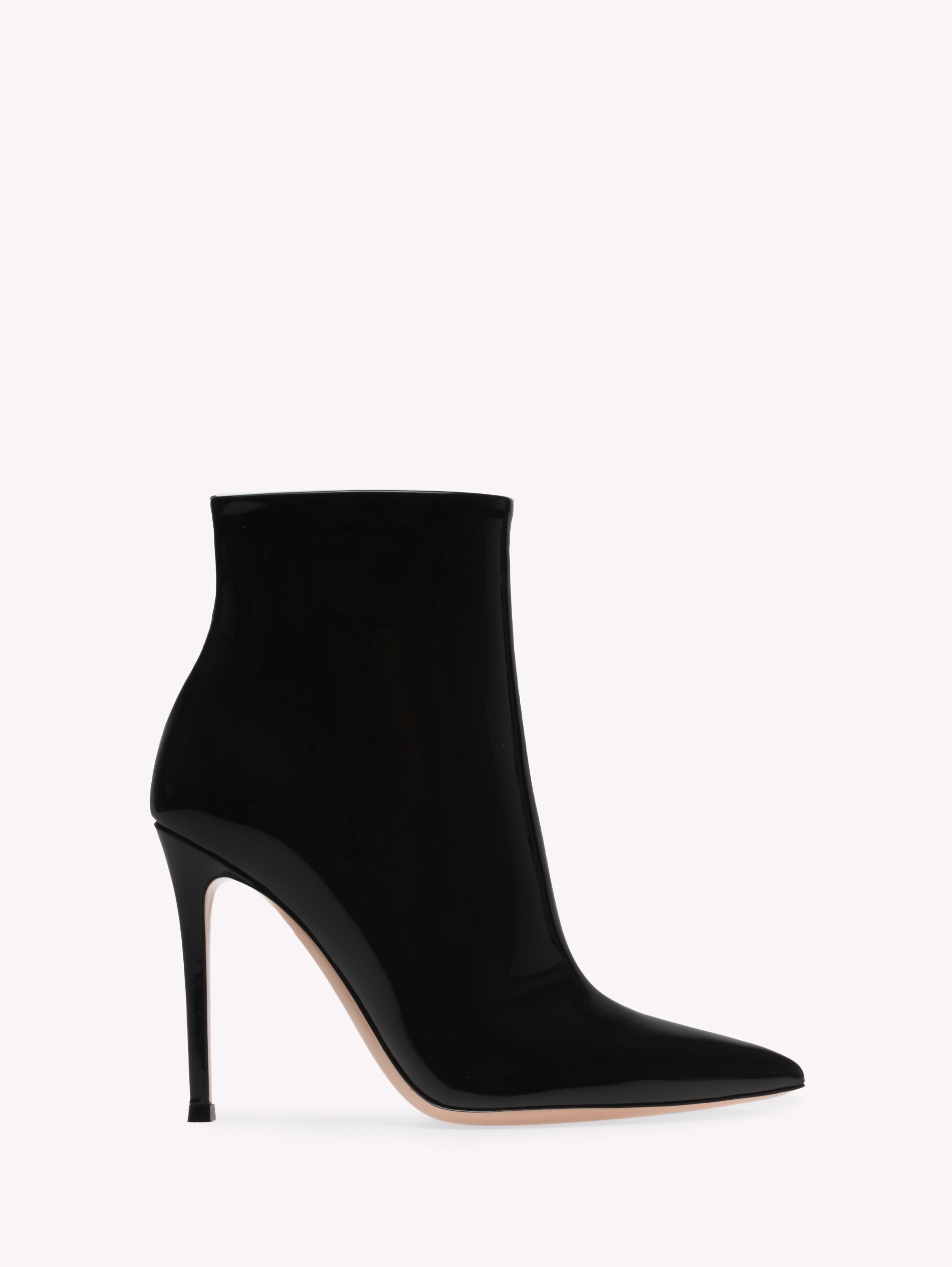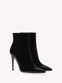 Crafted from patent leather, Avril Bootie is a pointed-toe fitted style with a 105mm stiletto heel. The inside zipper ensures the impeccable fit. Handmade in Italy. - Composition: 100% PATENT - Heel height: 4.1 inches / 105 mm - Model Code: G05619.15RIC Item ID: G05619.15RIC.VERNERO
