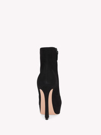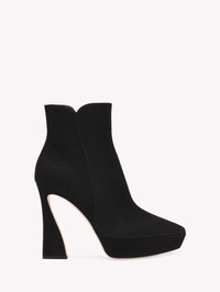 This pointy-toe bootie features a sculptural 115mm heel and 30mm platform: Vertigo Bootie enhances the silhouette and provides practicality thanks to metal zip. Handmade in Italy. - Composition: 100% SUEDE - Heel height: 85 - Model Code: G73125.85RIC Item ID: G73125.85RIC.CASNERO