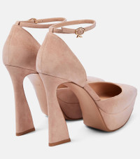 The Vertigo pumps have light suede uppers with buckled ankle straps, platform soles, and sculptural heels. Crafted from materials of the highest quality, Gianvito Rossi’s designs are handmade using both traditional craftsmanship and innovative techniques. Product Details - Comes with dust bag - Sole: leather insole and sole - Upper: goat leather - Toe shape: pointed toe - Designer color name: Peach - Comes with a box - Closure: buckle-fastening ankle strap - Made in Italy - Item number: P00815311 Size & Fit - True to size - European sizes - 12cm-4.5" heel (size EU 38) - 3,5cm-1.5" platform (size EU 38)