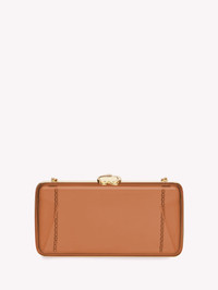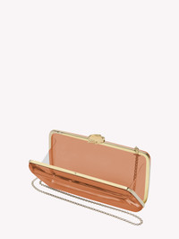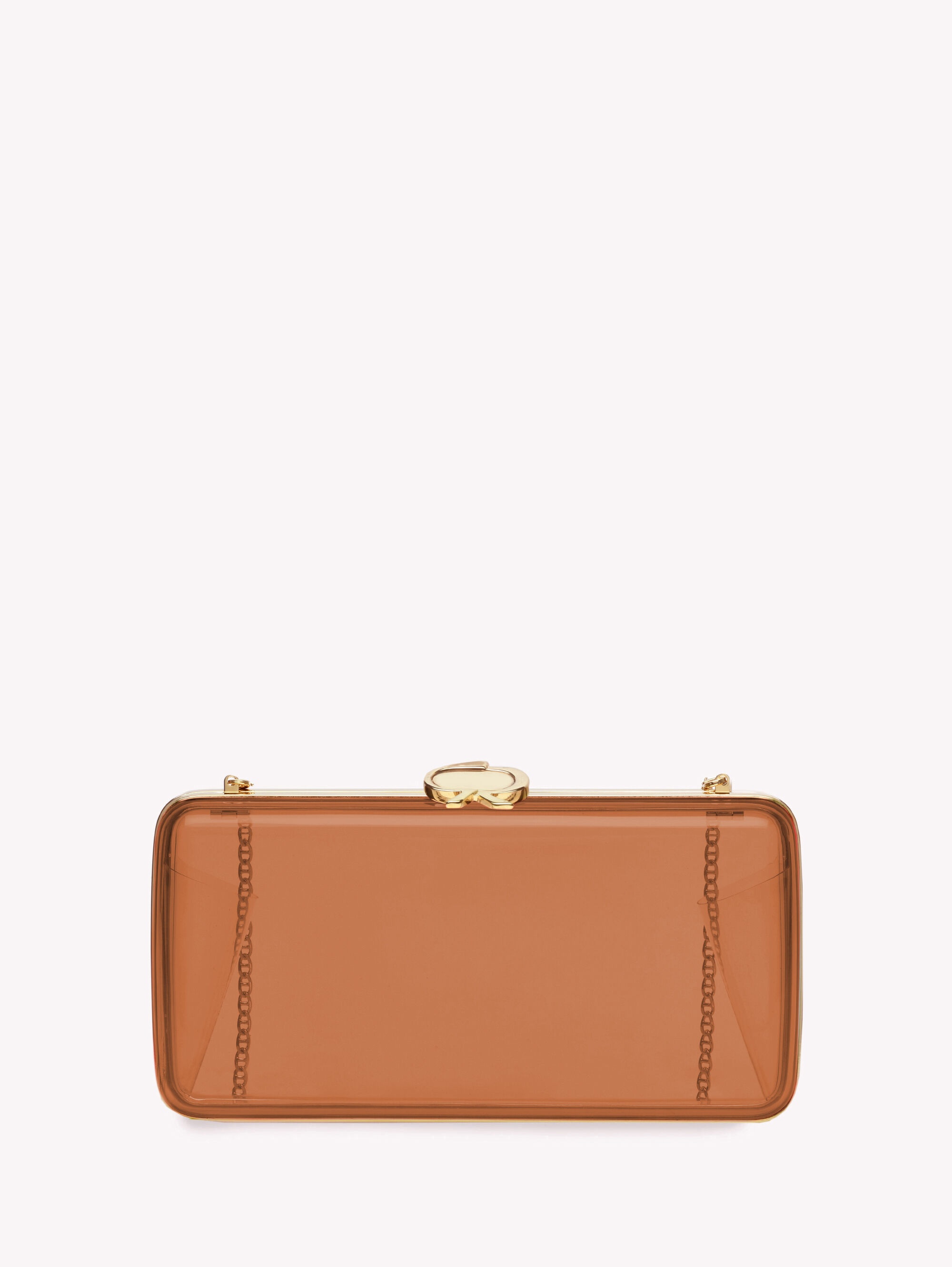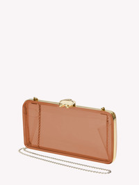 Vetra: an elegant gold framed transparent plexi clutch with removable shoulder chain. Handmade in Italy. - Model Code: B00386.CLUTC Item ID: B00386.CLUTC.PLXBROW_PZ