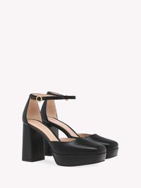 A pure source of style inspiration: Vian is a square-toe platform pump set on a block heel in patent leather. The fine ankle strap, adorned with the signature gold metal Ribbon buckle, adds a graceful touch to a chunky shape. Handmade in Italy from patent leathers. - Composition: 100% CALF - Heel height: 70 - Model Code: G40288.70RIC Item ID: G40288.70RIC.VGINERO