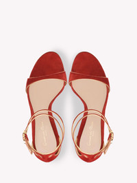 Crafted from suede, Victorine is a round toe sandal with a 115mm stiletto heel. The upper is defined by metallic-effect gold leather piping inspired by Art Deco. The ankle straps are enriched with the Maison's signature Ribbon buckle. Handmade in Italy. - Composition: 100% SUEDE - Heel Height: 4.5 inches / 115 mm - Model Code: G61753.11RIC Item ID: G61753.11RIC.XCKRGMK