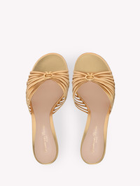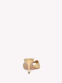 Crafted from metallic-effect leather leather, Vyna is a round open-toe mule with a 70mm thin heel. The three-colour or single-colour multistrap upper is embellished with the metallic Ribbon detail, signature of the Maison. Handmade in Italy. - Composition: 100% NAPPA - Heel height: 2.8 inches / 70 mm - Model Code: G10016.70RIC Item ID: G10016.70RIC.NPSMEKO