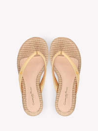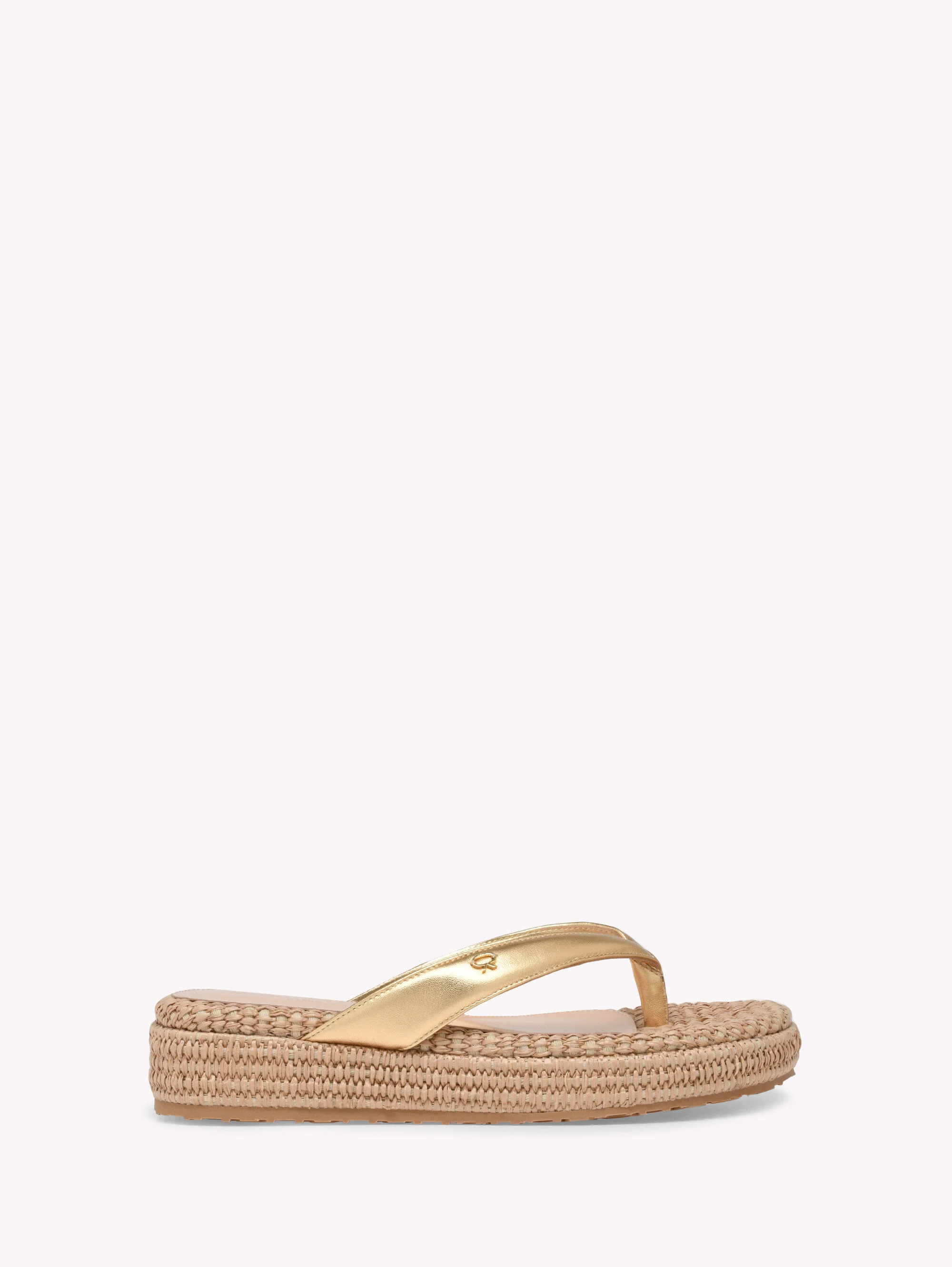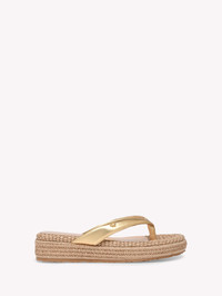 Crafted from metallic-effect leather, Tahiti is a round toe thong sandal. The flatform sole, that measures 35mm at the back of the heel, is covered with raffia and completed with a rubber sole. The mini Ribbon detail enriches the upper straps. Handmade in Italy. If you wish to return a product, you can return it for free within 30 days of the reception of your order. Please return the items in the same condition in which they were received, including dustbag, box and protective stickers. Incomplete, damaged, worn or altered items cannot be accepted as stated in our Terms and Conditions . Standard shipping FREE (3-5 business days) Express shipping $60 (1-3 business days) Deliveries are made from Monday to Friday between 9:00 a.m. and 6:00 p.m. The time frame for delivery is calculated from the time your order is dispatched, not from the time your order was placed. Please check our Shipping page for further information. - Composition: 100% NAPPA - Heel height: 0.2 inches / 5 mm - Model Code: G10089.05RIC Item ID: G10089.05RIC.NWAMENA