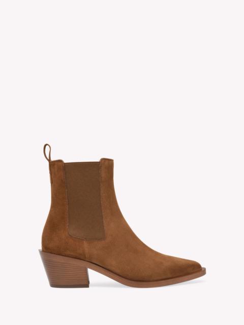 Crafted from supple suede, Wylie is a pointed-toe Western bootie with a 55mm heel and two tonal elastic side inserts. Handmade in Italy. If you wish to return a product, you can return it for free within 30 days of the reception of your order. Please return the items in the same condition in which they were received, including dustbag, box and protective stickers. Incomplete, damaged, worn or altered items cannot be accepted as stated in our Terms and Conditions . Standard shipping FREE (3-5 business days) Express shipping $60 (1-3 business days) Deliveries are made from Monday to Friday between 9:00 a.m. and 6:00 p.m. The time frame for delivery is calculated from the time your order is dispatched, not from the time your order was placed. Please check our Shipping page for further information. - Composition: 100% SUEDE - Heel height: 1.8 inches / 45 mm - Model Code: G72901.45CUO Item ID: G72901.45CUO.CASTEXA