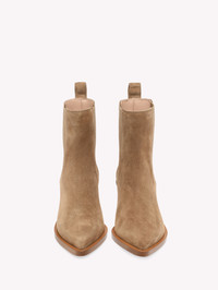 Crafted from supple suede, Wylie is a pointed-toe fitted Chelsea bootie with a 55mm Western heel. The design presents tonal elastic inserts on both sides for easy wearability. Handmade in Italy. - Composition: 100% SUEDE - Heel Height: 1.8 inches / 45 mm - Model Code: G72901.45CUO Item ID: G72901.45CUO.CASCAML