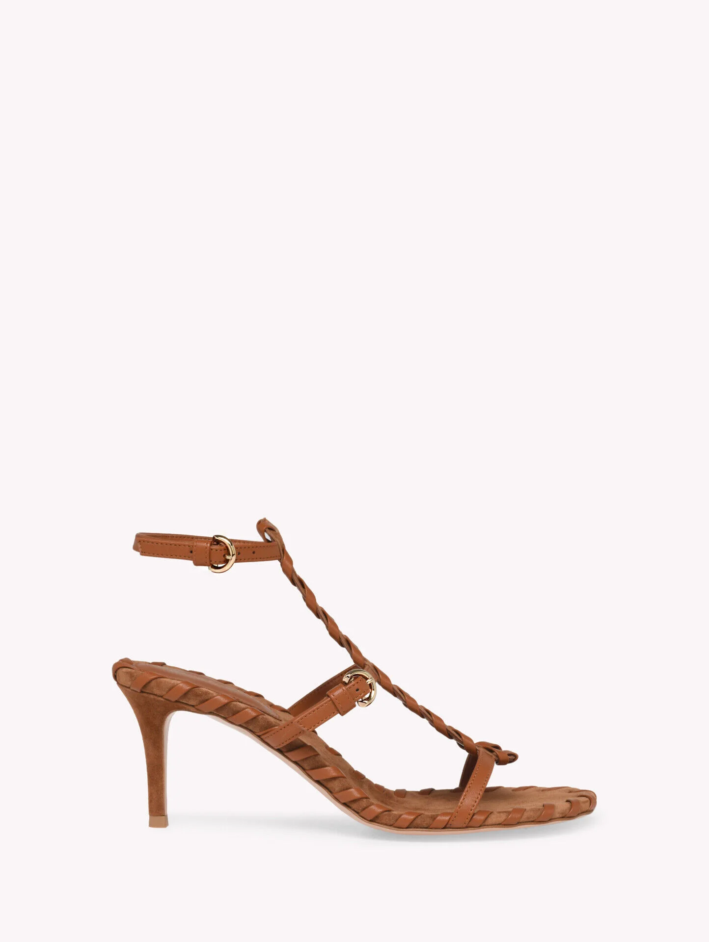 Crafted from suede and leather, Zaira Sandal 70 is a round toe style with a 70mm stiletto heel. The Moroccan weave technique shapes the unique craftsmanship of this style, gently threaded with a soft leather strip. Its distinctive pattern takes about one hour to come to life. Handmade in Italy. - Composition: 30%NAPPA+70%SUEDE - Heel Height: 2.8 inches / 70 mm - Model Code: G32746.70RIC Item ID: G32746.70RIC.XNCSELU