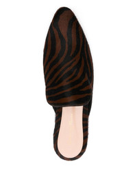 zebra-print slippers Highlights - Coffee brown - Branded leather insole - Leather outsole - Almond toe Made in Italy Composition Lining: Calf Leather 100% Sole: Calf Leather 100%, Rubber 100% Outer: Pony Fur 100%