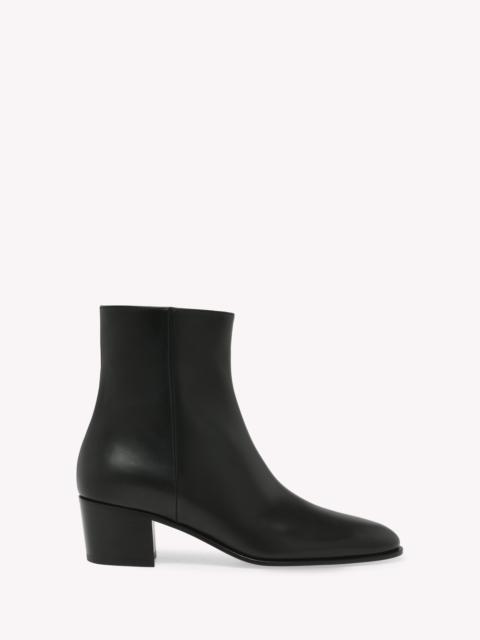 Crafted from leather, Spencer is an almond-toe fitted bootie with a 45mm stack leather heel. The design is completed with an inner tonal zipper. Handmade in Italy. - Composition: 100% CALF - Heel Height: 1.8 inches / 45 mm - Model Code: G72977.45CUO Item ID: G72977.45CUO.VGIMOKA