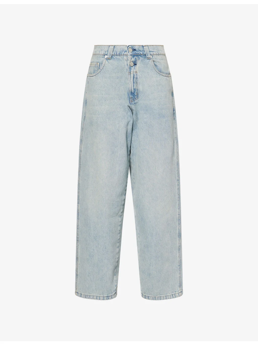PRODUCT DETAILS - Gimaguas denim trousers - 100% cotton - Button and zip-fly fastening - Baggy fit, mid-rise, barrel leg, structured waistband with belt loops, five pockets, leather patch at back, faded wash, contrast stitching - Machine wash cold - True to size - Made in Portugal - Model is 5ft 10in/1.78m and wears a size UK 8 - Midweight, non-stretch Ref: R04587225