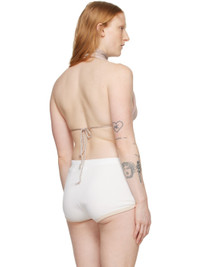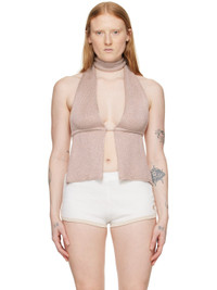Knit recycled nylon-blend tank top. · Wraparound plunging halter neck · Drawstring and gathering at waist · Open back · Unlined Supplier color: Champagne