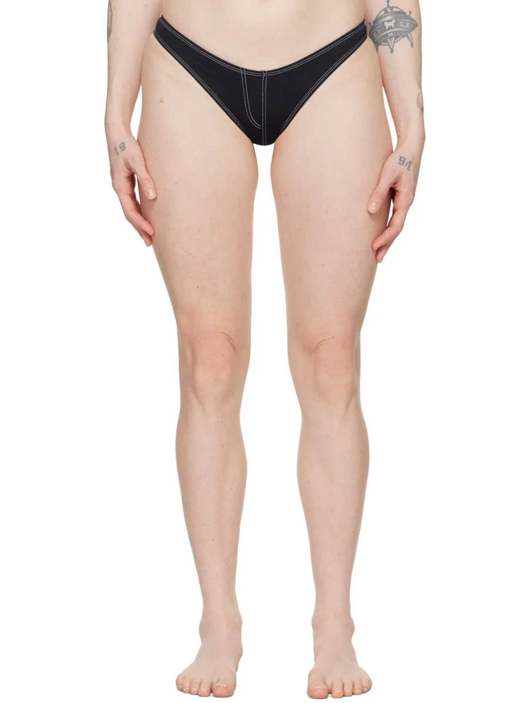 Stretch nylon jersey bikini bottom. · Elastisized waistband · Mock-fly · Fully lined · Contrast stitching in white Supplier color: Black