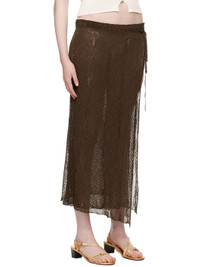 Semi-sheer pointelle knit viscose skirt. · Wrap construction · Elasticized rib knit waistband · Self-tie fastening at side seam Supplier color: Brown 100% viscose. Made in Spain 241776F092011