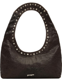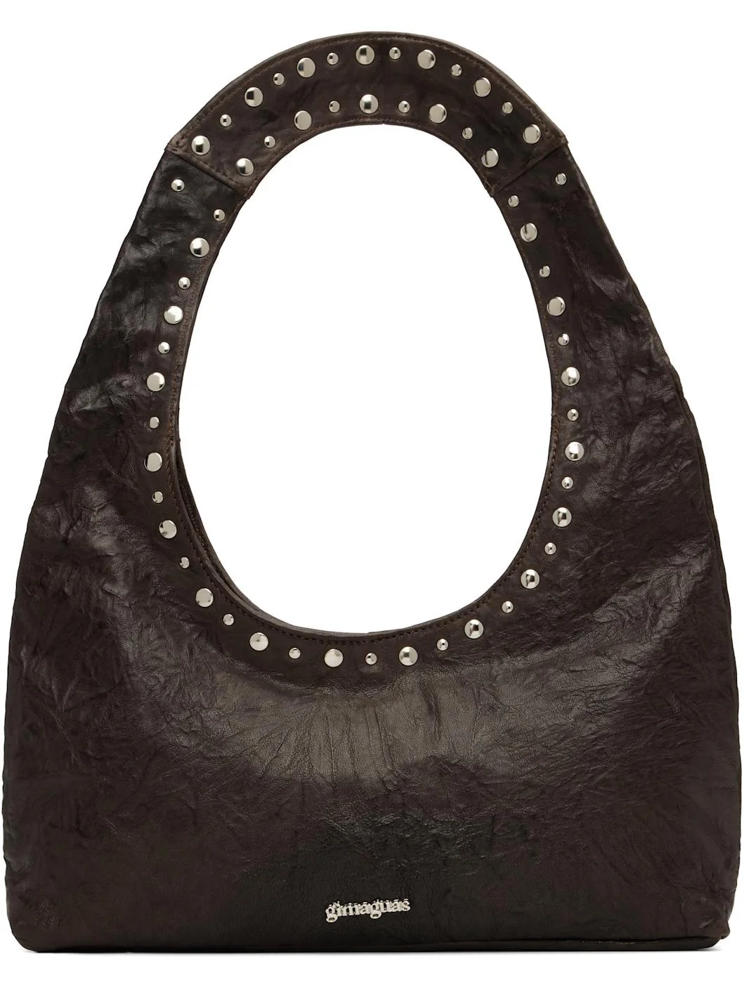 Crinkled grained lambskin shoulder bag. · Studs throughout · Integrated shoulder strap · Patch pocket at face · Logo hardware at back face · Magnetic closure · Patch pocket at interior · Twill lining · H6.5" x W14" · Total height: H16.5" Supplier color: Brown Lambskin. Made in Spain 252776F048009