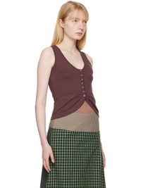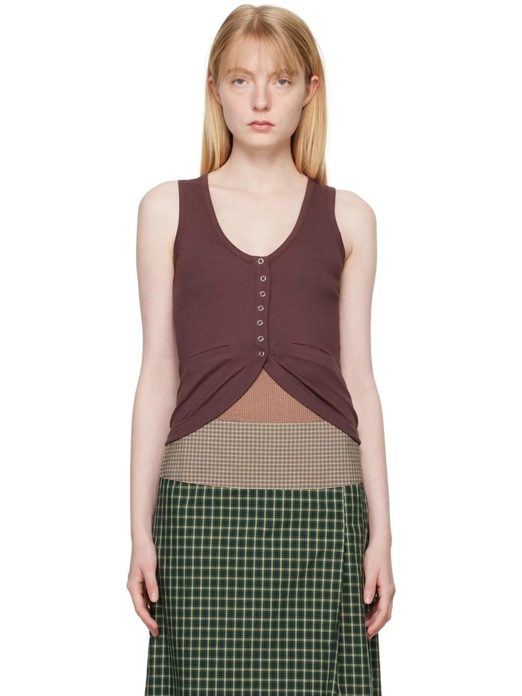 Cotton jersey tank top. · Plunging V-neck · Press-stud closure · Welt pockets · Curved hem Supplier color: Brown 100% cotton. Made in India 241776F111013