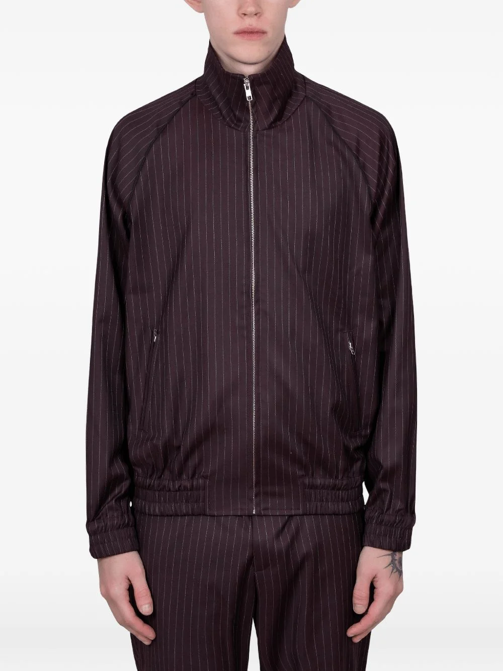 Brian pinstripe-pattern jacket Highlights - Brown - Pinstripe pattern - Zip fastening - High neck - Zip pockets - Ribbed hem Imported Composition Polyester 65%, Viscose 2% Washing instructions Read Manufacturer Guidelines