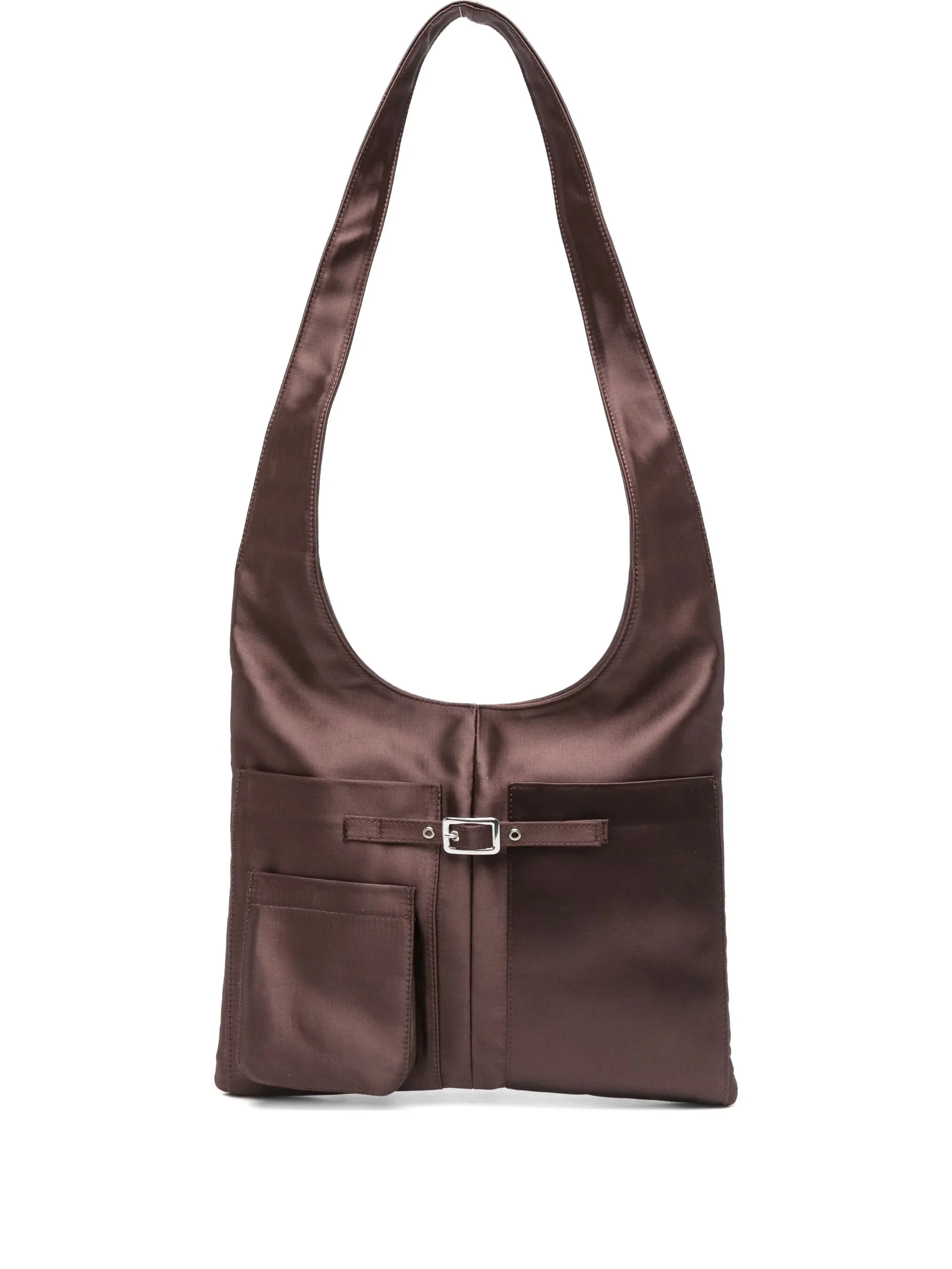 brown satin texture buckle detail front pocket single shoulder strap - depth: 2.0 centimetres, height: 27.0 centimetres, strap: 90.0 centimetres, width: 33.0 centimetres - Color: BROWN - Made in: Bangladesh - Designer Style ID: BLANCA SATEN BROWN Composition and care Outer Composition Satin: 100.0%