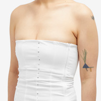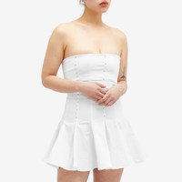 Spanish label Gimaguas offers up a fresh take on the traditional mini-length design with this Williams Dress. This strapless silhouette is accented using vertical stud details and a sports-inspired panelled skirt, exemplifying Claudia and Sayana Durany’s drive for clothing made for “joyful moments”. - 100% Cotton - Strapless - Mini Length
