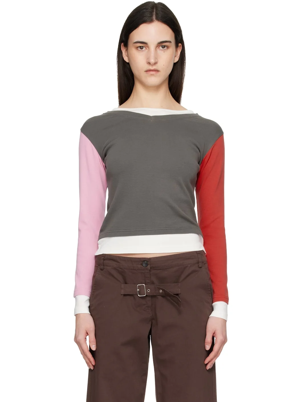 Organic cotton jersey T-shirt. · Rib-knit crewneck and V-neck · Layered collar, hem, and cuffs in white · Dropped shoulders Supplier color: Multicolor 100% organic cotton. Made in India 261776F110008