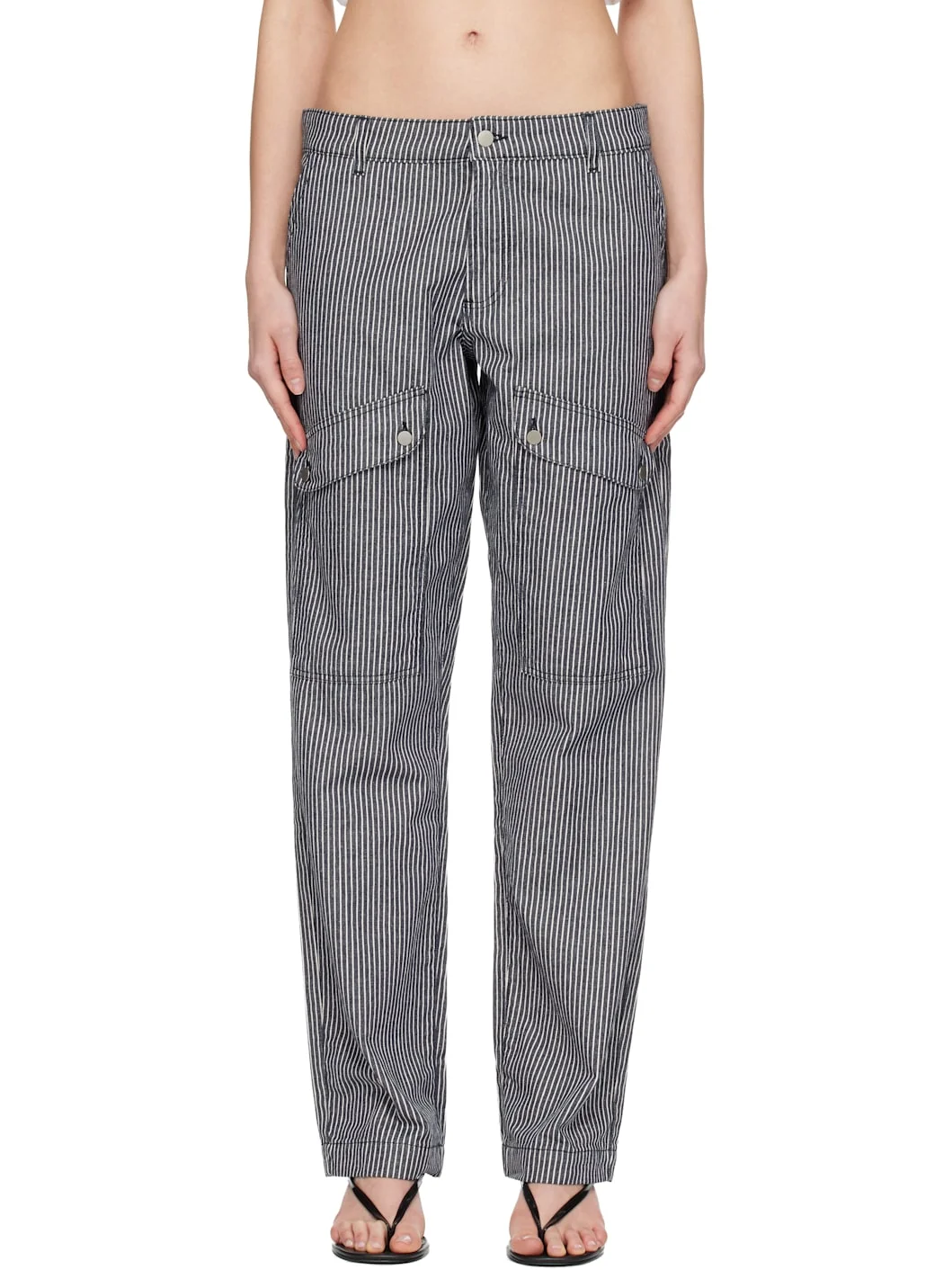 Organic cotton- and recycled cotton-blend twill trousers · Pinstripes throughout · Straight-leg · Belt loops · Four-pocket styling · Zip fly · Flap pockets at front · Silver-tone hardware Supplier color: Navy 34% recycled polyester, 33% organic cotton, 33% recycled cotton. Made in Portugal 261776F087005