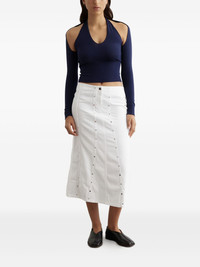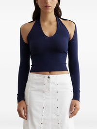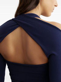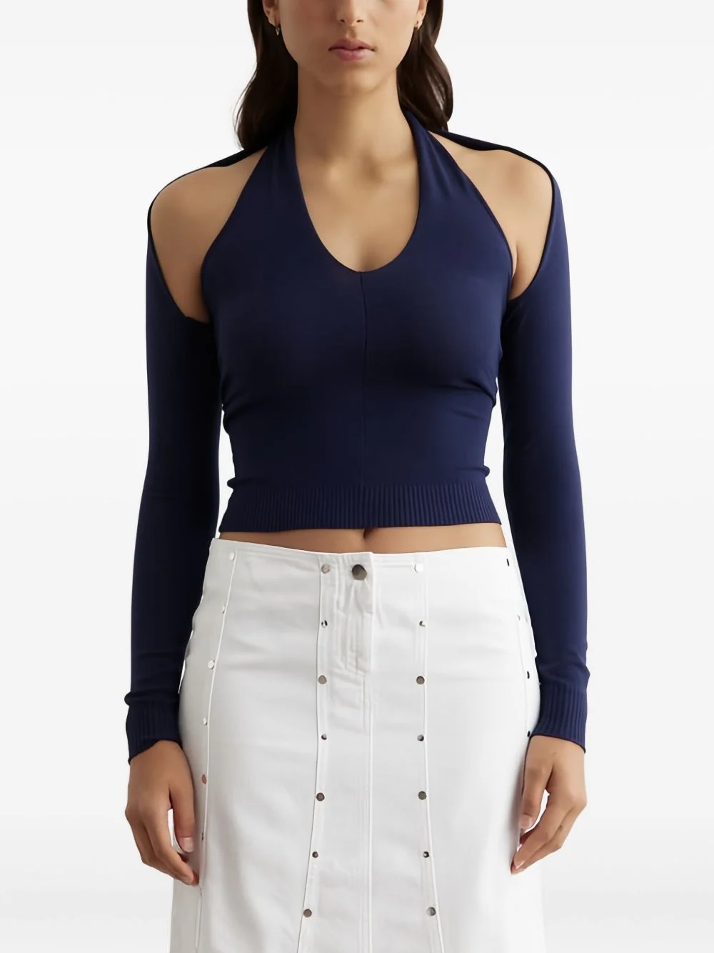 open-back long-sleeved top Highlights - Navy blue - Open back - Long sleeves - Ribbed cuffs and hem - V-neck Imported Composition Viscose 72%, Polyester 28% Washing instructions Read Manufacturer Guidelines