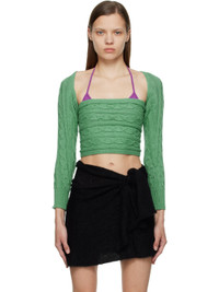Cable knit nylon and wool-blend sweater. · Wrap construction · Square neck · Rib knit cuffs Available exclusively at SSENSE. Supplier color: Green