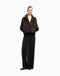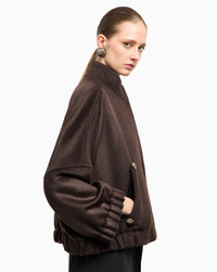 Sophisticated short pea coat made of alpaca and wool with a cosy, warm feel. The style is distinguished by its modern silhouette with oversized volumes, accentuated by wide sleeves and elasticated cuffs and hem. The mock neck and concealed front closure give it a clean, streamlined silhouette, while the exposed metal buttons, which accent the front welt pockets, add a sophisticated touch of light. A versatile, on-trend outerwear piece, perfect for elegantly completing seasonal looks. Upright collar Long sleeves Concealed zip closure Two slant pockets with gold-coloured logo buttons Elasticated cuffs and hem Unlined Length: 60 cm from centre back Made in Italy Product Code: GW001533TE16690U8130
