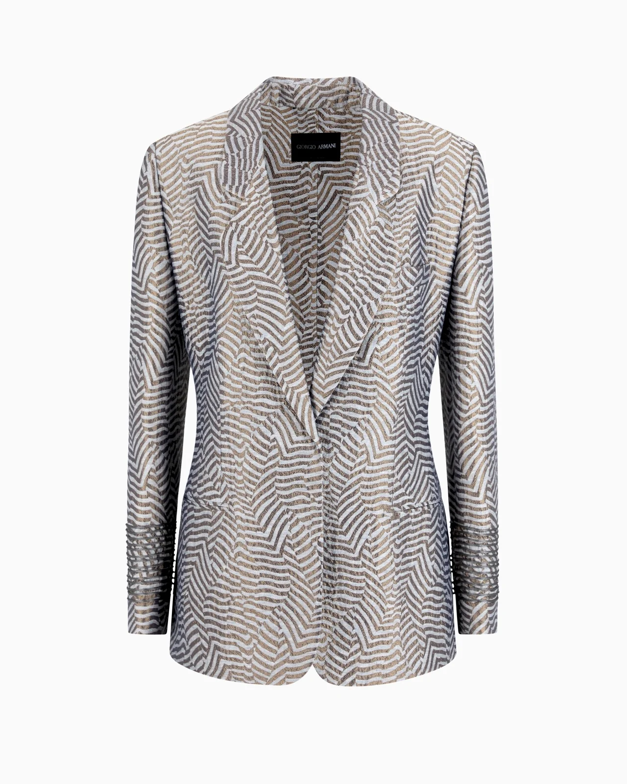 JACQUARD VISCOSE, SILK AND LINEN SINGLE-BREASTED JACKET