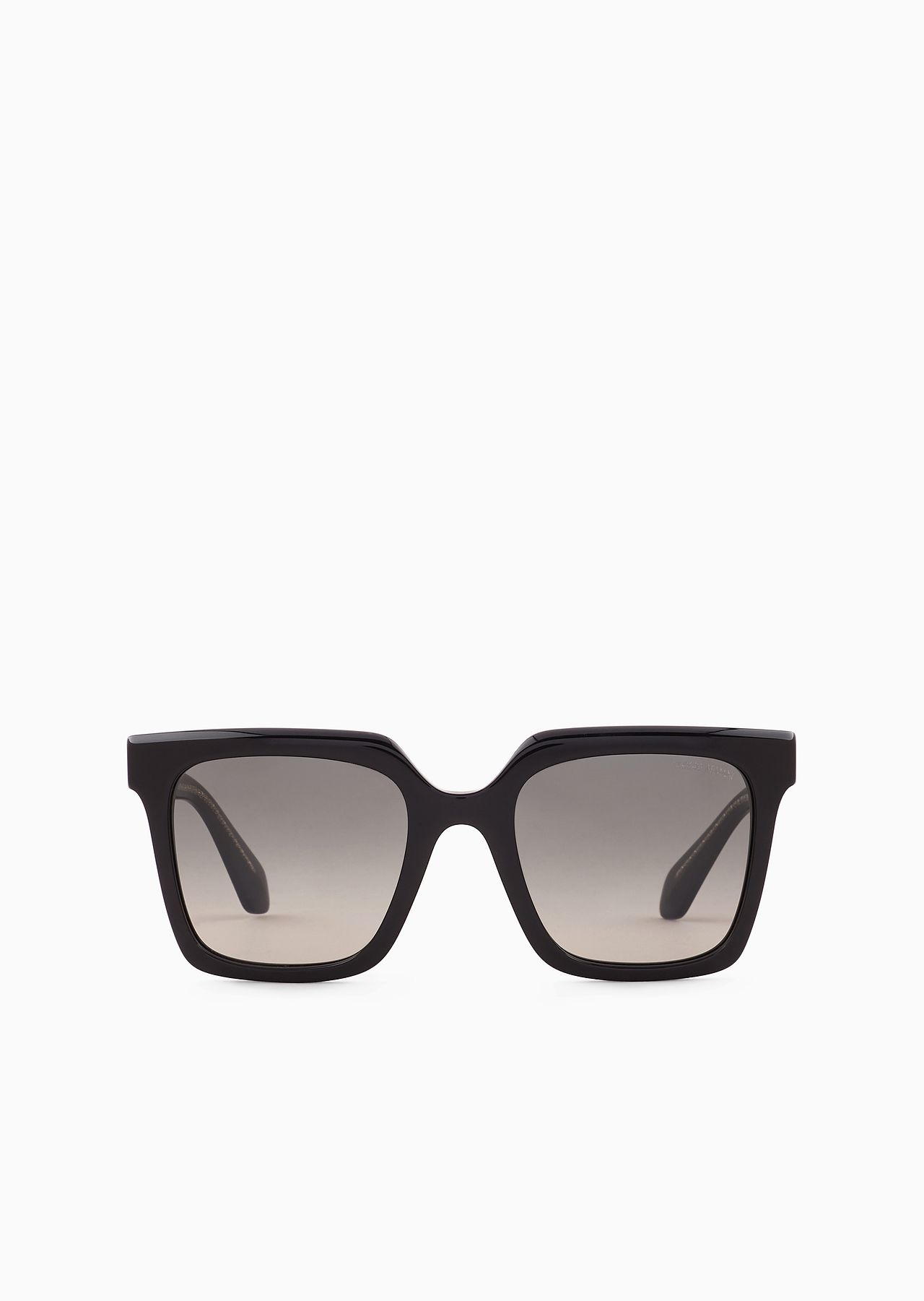Oversized bio-acetate square sunglasses that underline the natural elegance of sustainable design from Giorgio Armani. This elegant, on-trend item features gradient lenses colour-matched with the frame. Product Code: AR8156F.L587571.L152.L Details Composition 100% Acetate Asian Fit Frame material: Bio Acetate Temple material: Bio Acetate Shape: Square Lens diameter/bridge width/temple length: 52/21/140 mm Frame colour: Shiny black Lens colour: Gradient grey Available for prescription: Yes