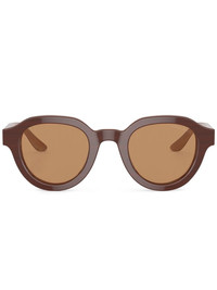 logo-print round-frame sunglasses logo-print round-frame sunglasses from GIORGIO ARMANI featuring logo print to the front, brown tinted lenses, UV-protective lenses, round frame, straight arms, curved tips and brown. All glasses from FARFETCH are sold as non-prescription frames.. These glasses come with a protective case.. Made in United States Composition Acetate 100%