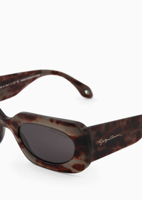 Bold construction and volumes define these women's rectangular sunglasses made from bio-acetate. The style, featuring gradient lenses with full-colour frames, is customised with a laser-cut signature logo on the temples. Product Code: AR8182.L5976B1.L152.L Details Composition 100% Acetate Frame material: Bio-acetate Temple material: Bio-acetate Shape: rectangular Lens diameter/bridge width/temple length: 52/140/23 mm Frame colour: Tortoiseshell grey Lens colour: Smoke crystal Suitable for prescription lenses: Yes
