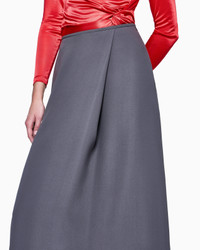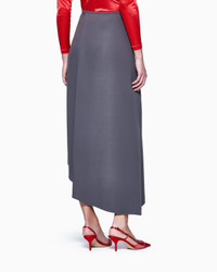 Midi skirt defined by an asymmetrical cut that enhances its movement. Crafted from washed silk crepe, the style elegantly caresses the silhouette, lending a sophisticated, modern allure. The lightness of the fabric and the refined design create a versatile piece, perfect for an everyday look or for completing an elegant outfit with a simple change of accessories. A piece that expresses discreet and refined luxury. The piece is part of the Holiday selection, which ranges from warmer to cooler tones with shades of coral red and grey, colours that create a refined, evergreen palette. The collection offers fluid shapes and smooth fabrics for a touch of modernity that never compromises on classic elegance. Side zip closure Front pleat Asymmetric hemline Lined Length: 80 cm at the shortest part and 101 cm at the longest part Made in Italy Product Code: GW000182TE20007U8094