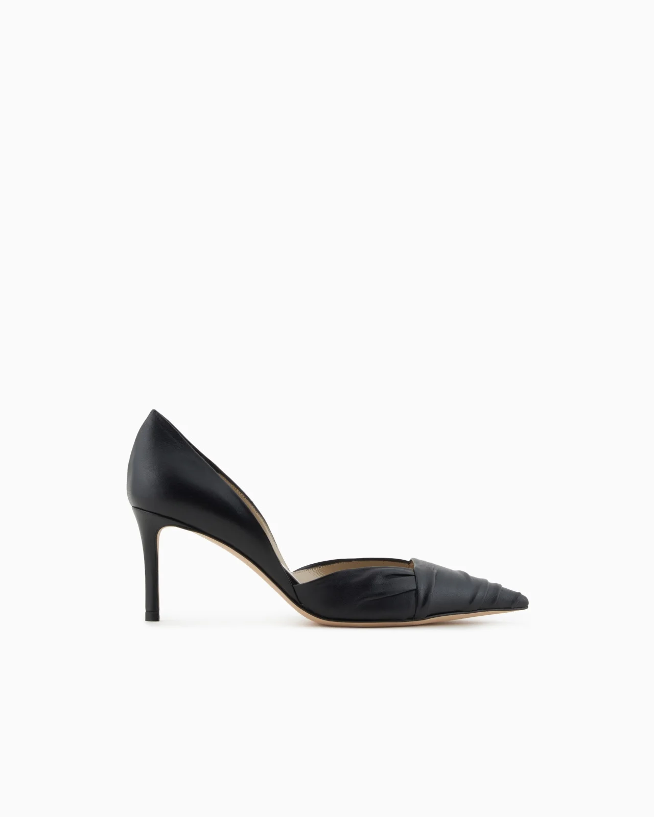 Refined court shoes, made of supple nappa leather, distinguished by a special technique that enhances the softness of the leather. A luxurious construction that wraps around the foot like an exquisite foulard, completed with a deep topline that makes the style streamlined. A true representative of great Armani style, perfect for day or evening. Round-toe Deep topline Covered stiletto heel Heel height: 10.5 cm Made in Italy Product Code: X1E987XR39600002