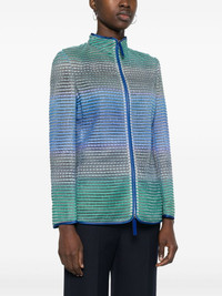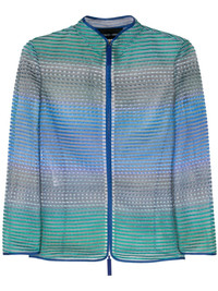 striped contrast-trim jacket Highlights - Blue/green - Semi-sheer construction - Two-tone design - Horizontal stripe pattern - Stand-up collar - Long sleeves - Straight hem - Front two-way zip fastening Made in Italy Composition Outer: Polyester 100% Lining: Silk 100% Washing instructions Dry Clean Only