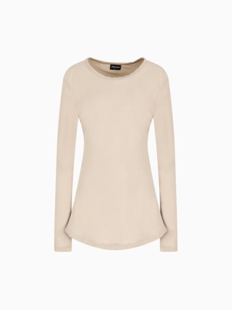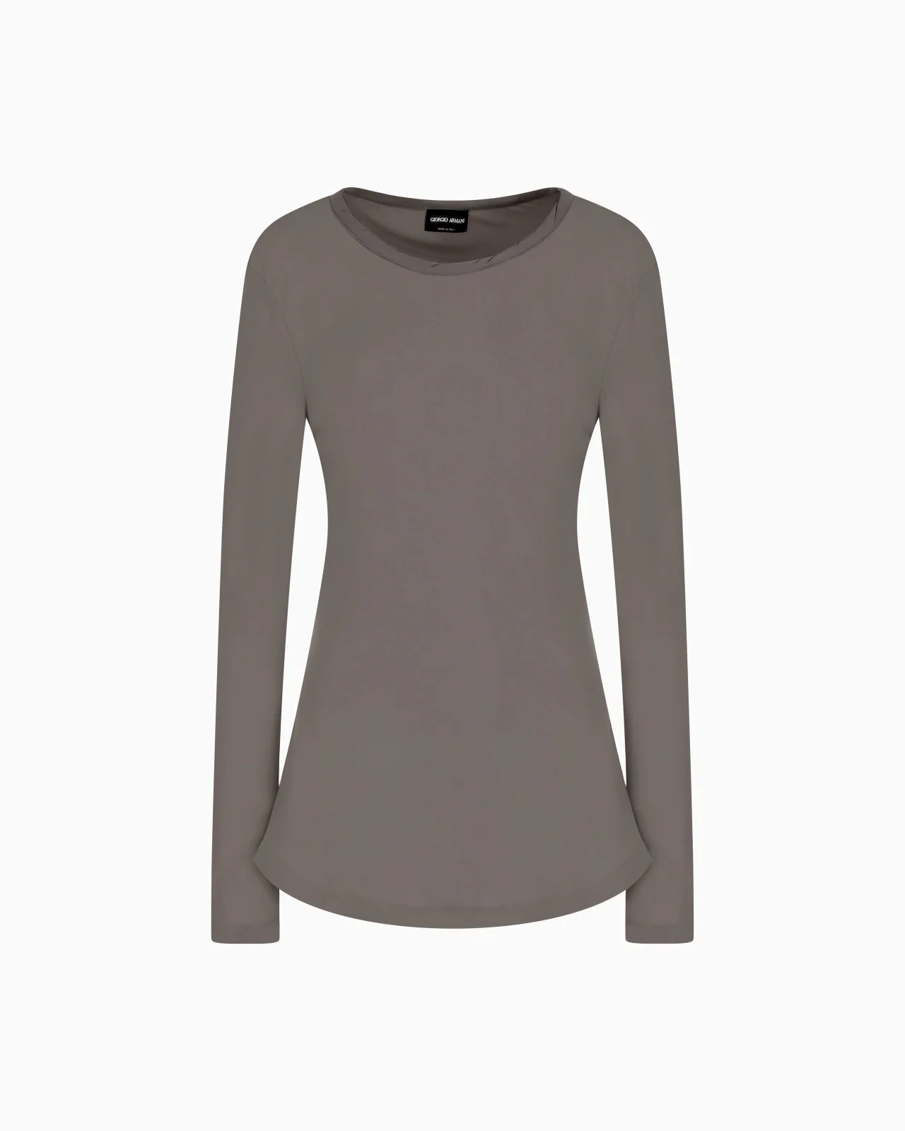 Elegant blouse made of triple silk georgette, in natural shades that distinguish this part of the collection. A sophisticated piece, with an oval neckline and long sleeves, perfect for day or night paired with collection’s trousers and jackets. Oval neckline Long sleeves Matching edges Unlined Made in Italy Product Code: GW000776TE10814U8119