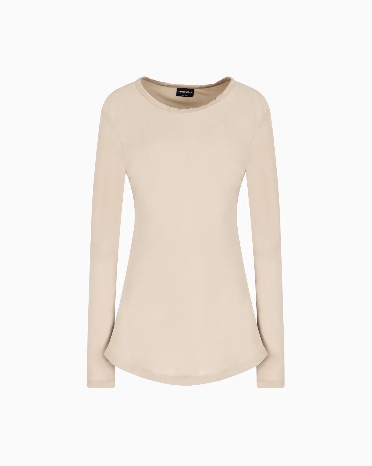 Elegant blouse made of triple silk georgette, in natural shades that distinguish this part of the collection. A sophisticated piece, with an oval neckline and long sleeves, perfect for day or night paired with collection’s trousers and jackets. Oval neckline Long sleeves Matching edges Unlined Made in Italy Product Code: GW000776TE10814U8048