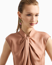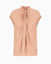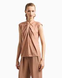 Essential and minimalist, this crew-neck blouse in washed silk double georgette is the perfect complement to effortless looks. Defined by short cap sleeves and a knot detail with a draped front, it comes in the signature colours of this part of the collection. Upright collar Cap sleeves Front draping with knot Back teardrop opening Closure with small buttons on the back Made in Italy Product Code: GW001107TE14025U6090